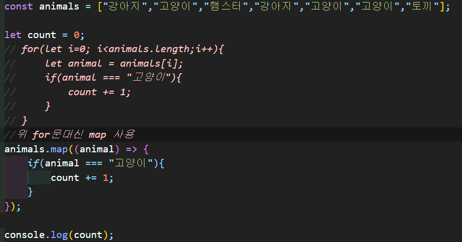 1. map을 이용하여 고양이가 몇마리인지 카운트 하시오.