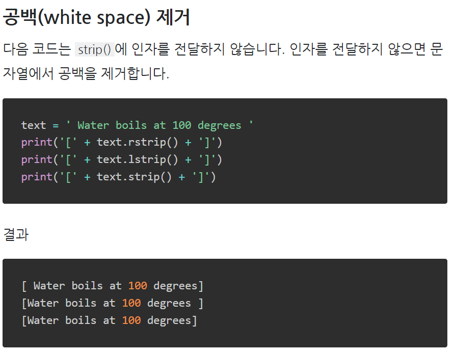 strip() 를 이용하면 특정 문자 또는 공백을 제거할 수 있다.