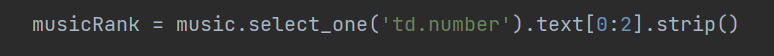 랭크 숫자만 나오는게 아니라 랭크가 몇단계 상승,하락했다는 문구도 같이 나오게됨. 여기서 이용할 수 있는 것이 [num:num] 이다. 범위를 정해서 글자를 긁어올 수 있는 기능이다. 첫번째 num은 시작index이고 두번째 num은 끝나는 index이다. 랭크가 99위까지 있어서 나는 두글자만 가져오면 되어서 [0:2]로 하였다. 결과는